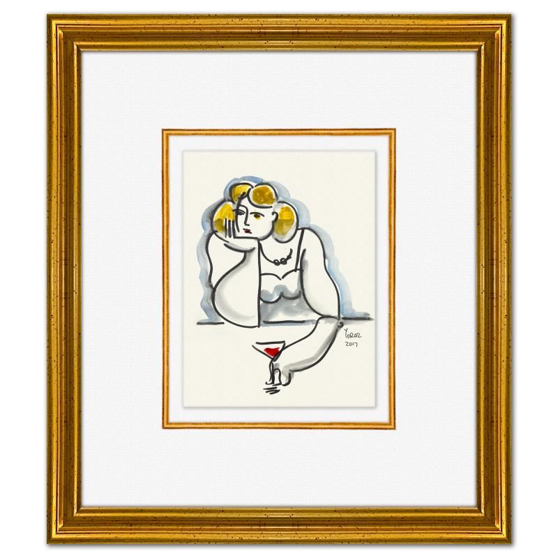 This is an original painting on paper by Yuroz, hand signed by the artist. This piece comes custom framed on linen. Includes Letter of Authenticity. Measures approx. 16" x 14" (frame), 8" x 6" (image).