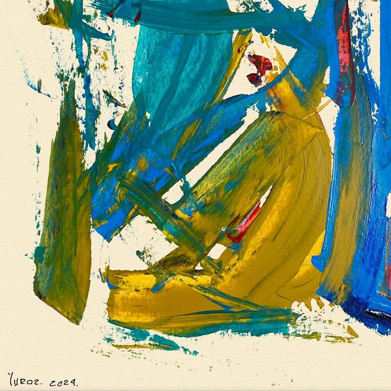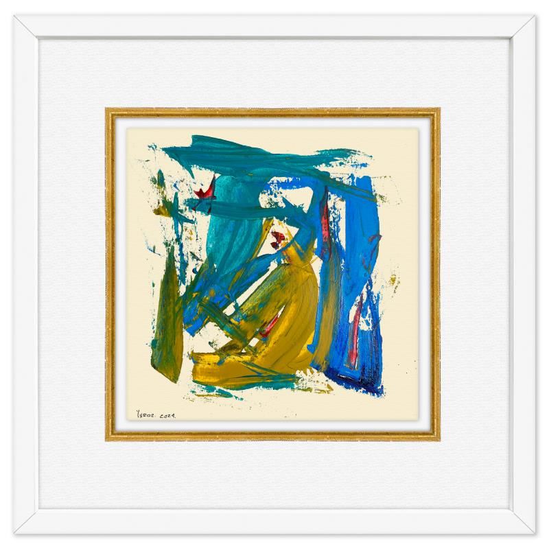 This is an original painting on paper by Yuroz, hand signed by the artist. This piece comes custom framed on linen. Includes Letter of Authenticity. Measures approx. 18" x 18" (frame), 10" x 10" (image).