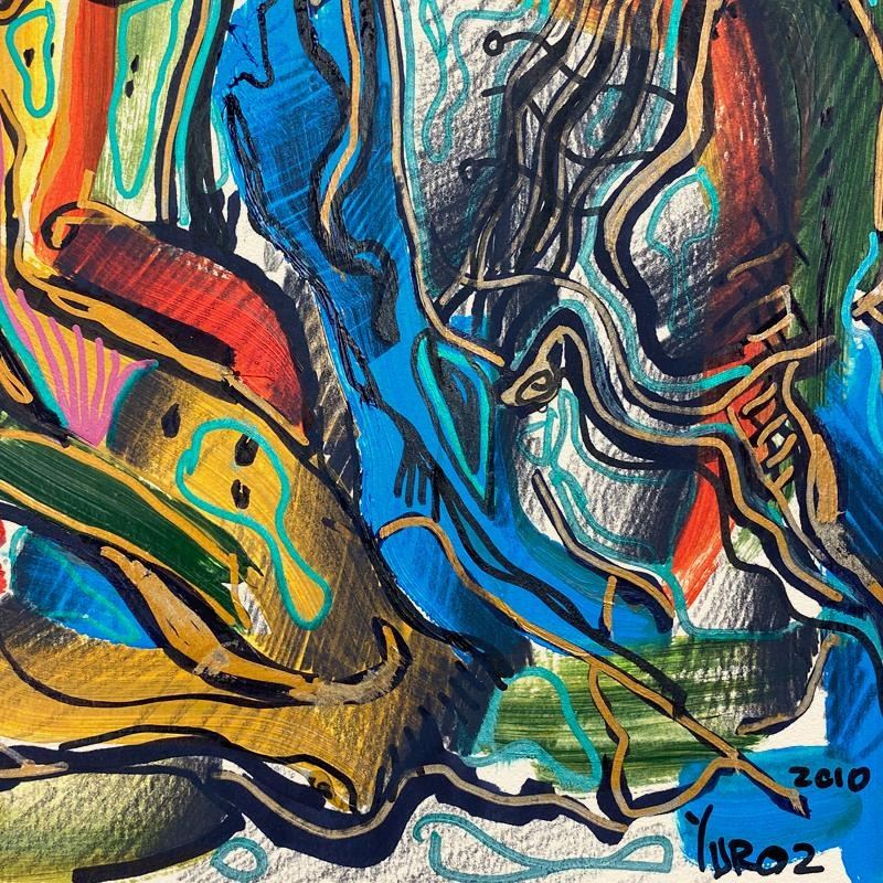 This is an original painting on paper by Yuroz, hand signed by the artist. This piece comes custom framed on linen. Includes Letter of Authenticity. Measures approx. 18" x 18" (frame), 10" x 10" (image).