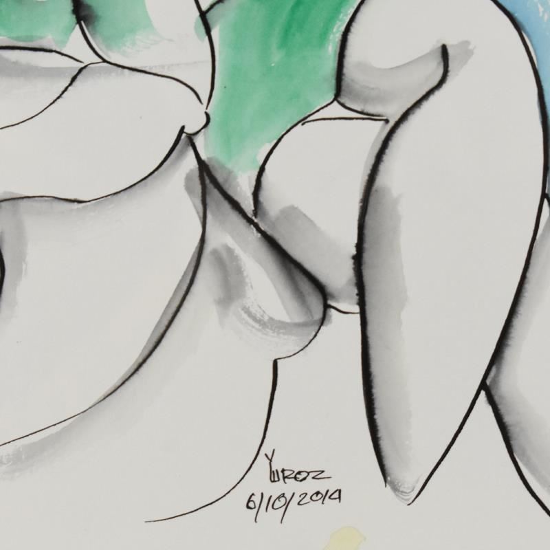 This is an original mixed media watercolor painting on paper by Yuroz, hand signed by the artist. This piece comes custom framed. Includes Letter of Authenticity. Measures approx. 23.5" x 26.5" (frame), 9" x 12" (image).