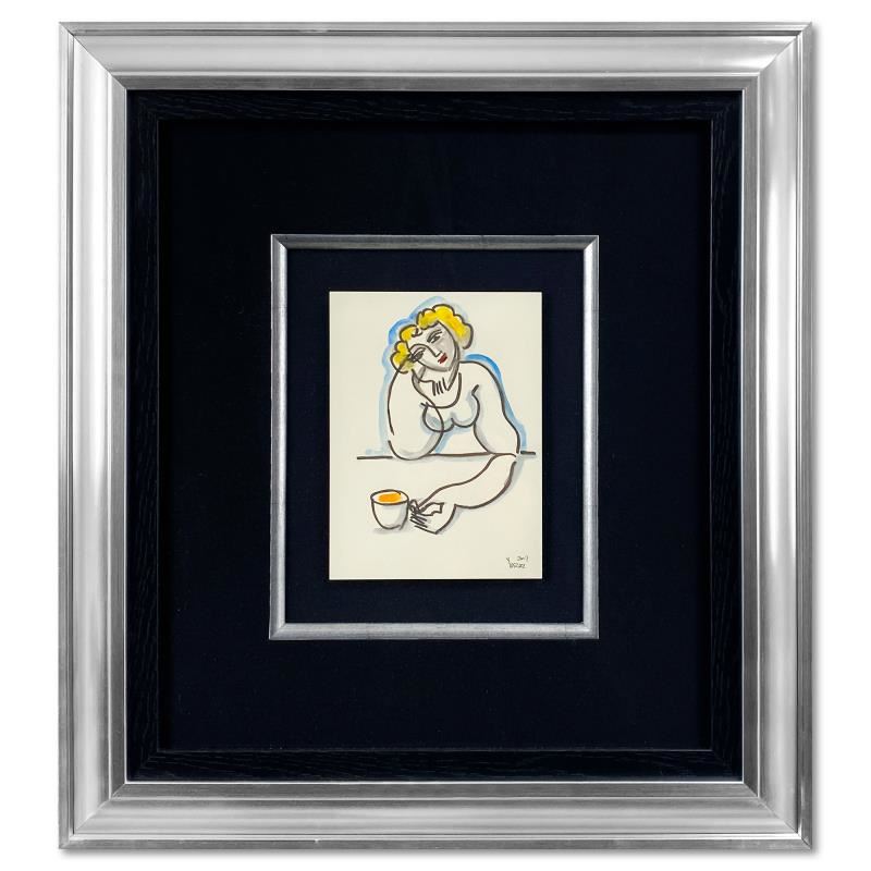 This is an original painting on paper by Yuroz, hand signed by the artist. This piece comes custom framed on linen. Includes Letter of Authenticity. Measures approx. 21.5" x 19.5" (frame), 7.5" x 5.5" (image).