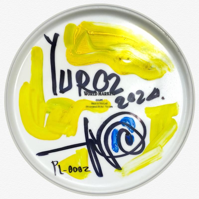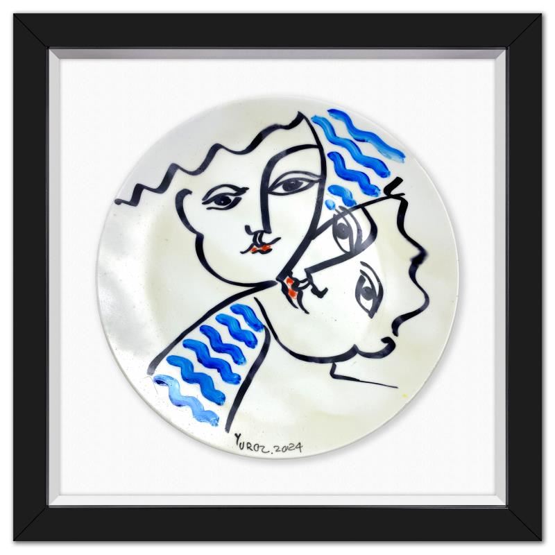 This is a hand painted ceramic plate by Yuroz, hand signed by the artist. This piece comes custom framed floated on linen. Includes Letter of Authenticity. Measures approx. 15.5" x 16" (frame), 11" (diameter). This item requires special handling and may have a longer than usual turnaround.
