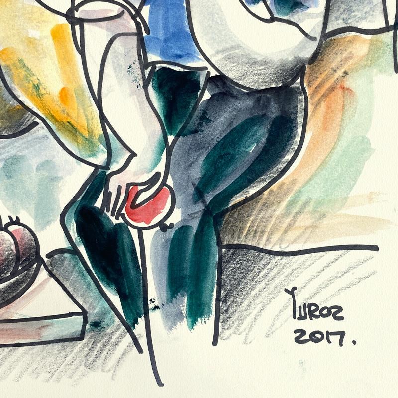 This is an original painting on paper by Yuroz, hand signed by the artist. This piece comes custom framed on linen. Includes Letter of Authenticity. Measures approx. 25.5" x 24" (frame), 15.5" x 14.5" (image). This item requires special handling and may have a longer than usual turnaround.