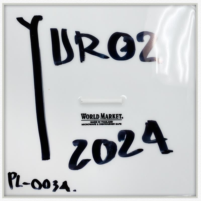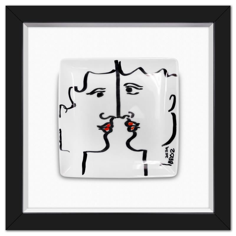 This is a hand painted ceramic plate by Yuroz, hand signed by the artist. This piece comes custom framed floated on linen. Includes Letter of Authenticity. Measures approx. 13.5" x 13.5" (frame), 7.5" (diameter). This item requires special handling and may have a longer than usual turnaround.