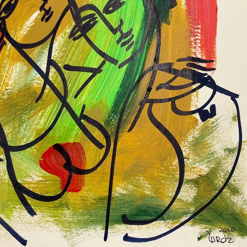 This is an original painting on paper by Yuroz, hand signed by the artist. This piece comes custom framed on linen. Includes Letter of Authenticity. Measures approx. 18" x 18" (frame), 10" x 10" (image). This item requires special handling and may have a longer than usual turnaround.