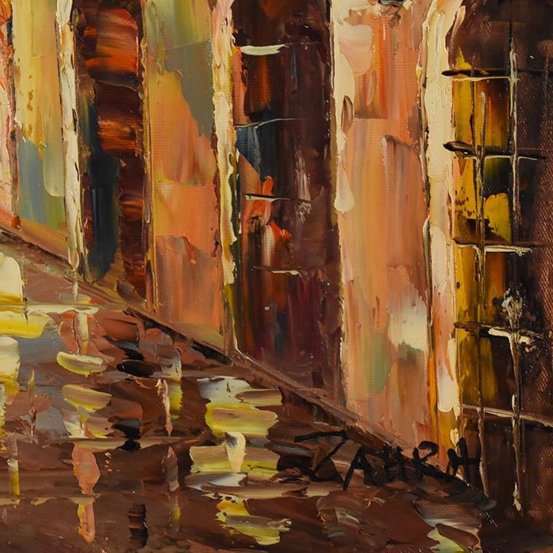 This is an original oil painting on canvas by Zahra, hand signed by the artist. Includes Letter of Authenticity. Measures approx. 24" x 24" (image).