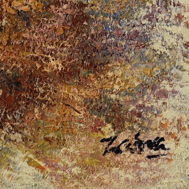 This is an original oil painting on canvas by Zahra, hand signed by the artist. Includes Letter of Authenticity. Measures approx. 24" x 24" (image).