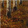 This is an original acrylic painting on canvas by Zahra, hand signed by the artist. Includes Letter of Authenticity. Measures approx. 36" x 36" (image).