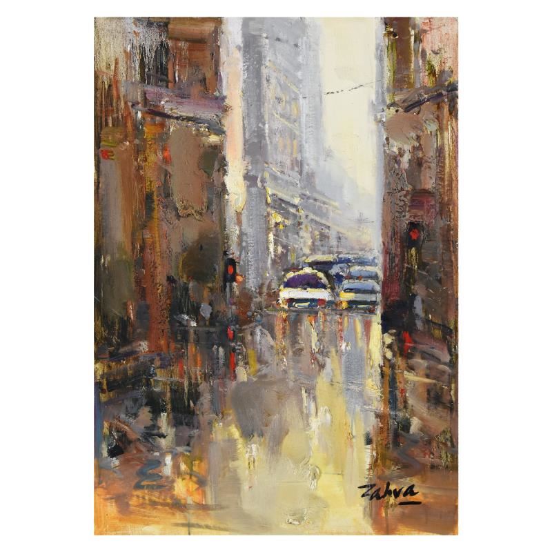 This is an original oil painting on canvas by Zahra, hand signed by the artist. Includes Letter of Authenticity. Measures approx. 24" x 36" (image).