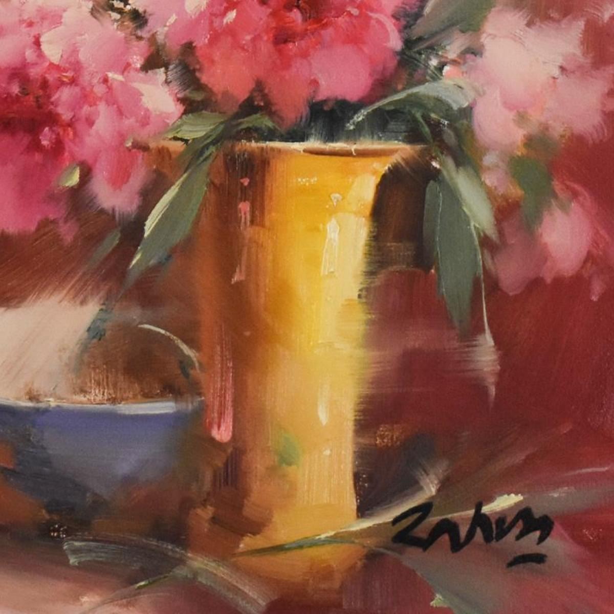This is an original oil painting on canvas by Zahra, hand signed by the artist. Includes Letter of Authenticity. Measures approx. 30" x 30" (image).