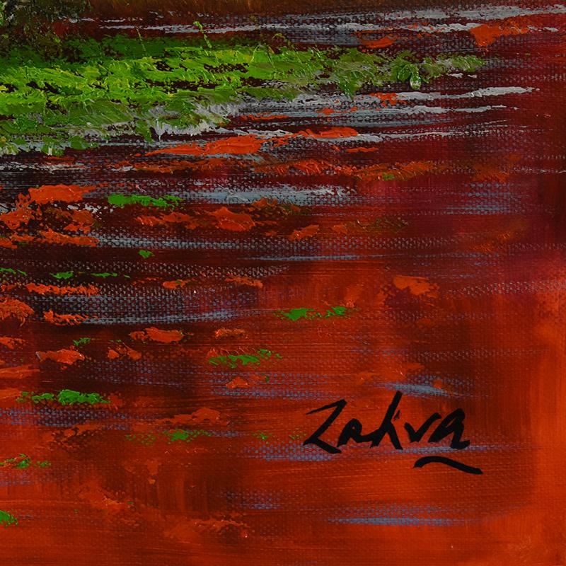 This is an original acrylic painting on canvas by Zahra, hand signed by the artist. Includes Letter of Authenticity. Measures approx. 30" x 50" (image).