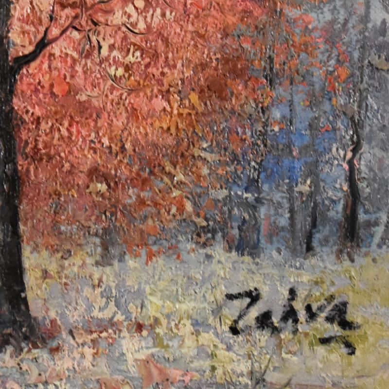 This is an original oil painting on canvas by Zahra, hand signed by the artist. Includes Letter of Authenticity. Measures approx. 24" x 24" (image).