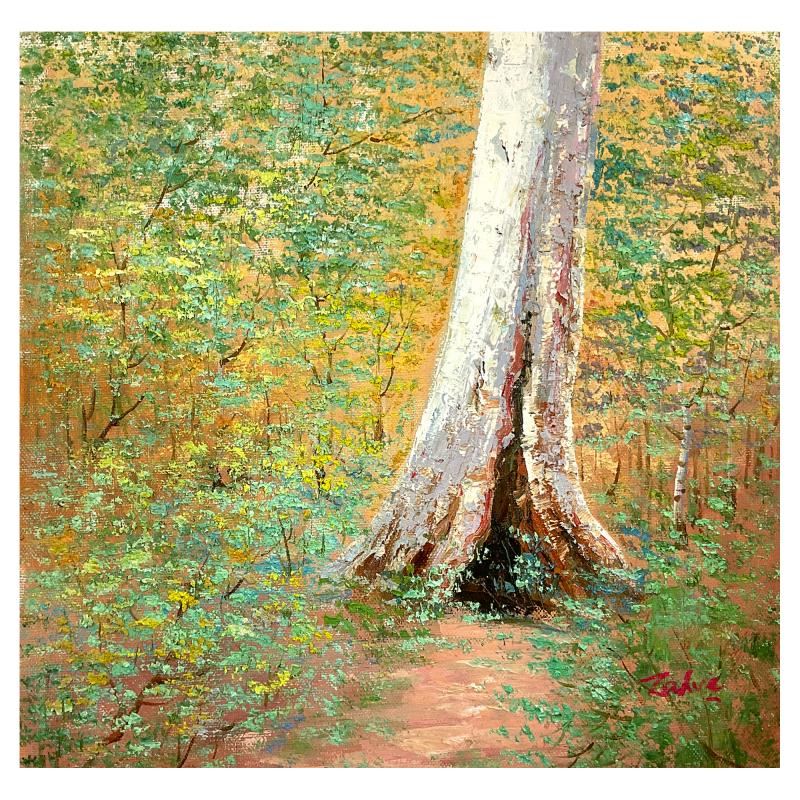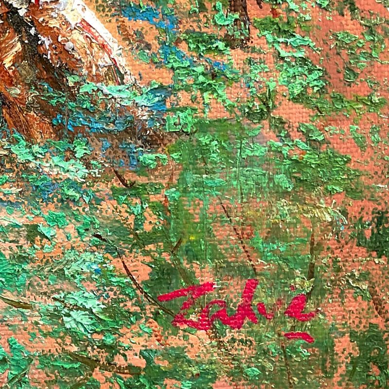 This is an original oil painting on canvas by Zahra, hand signed by the artist. Includes Letter of Authenticity. Measures approx. 31" x 31" (image).