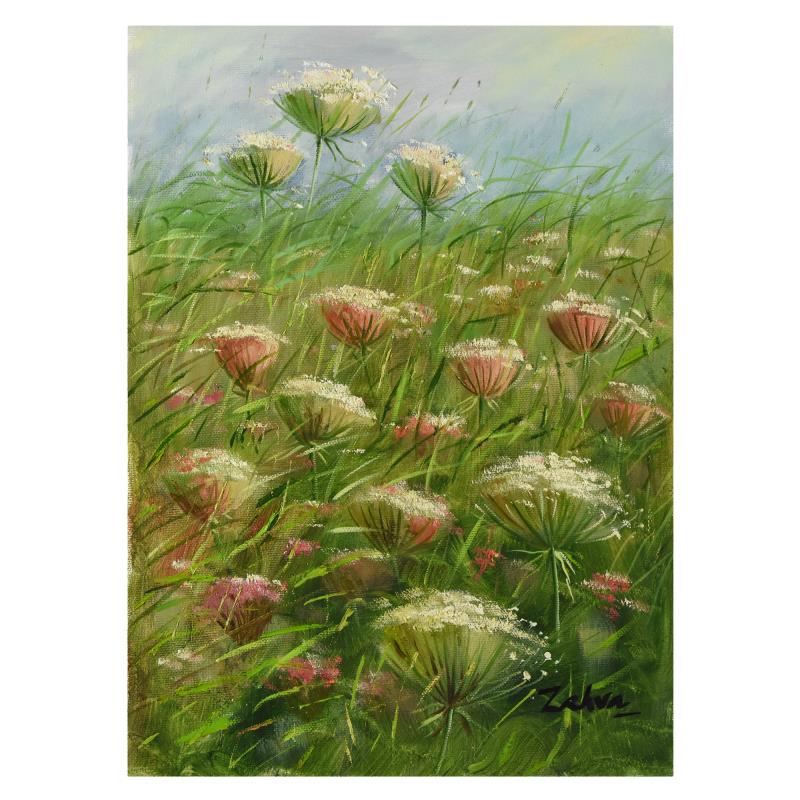 Untitled by Zahra Original. Please see photos and description for all available information. This is an original oil painting on canvas by Zahra, hand signed by the artist. Includes Letter of Authenticity. Measures approx. 24" x 36" (image).