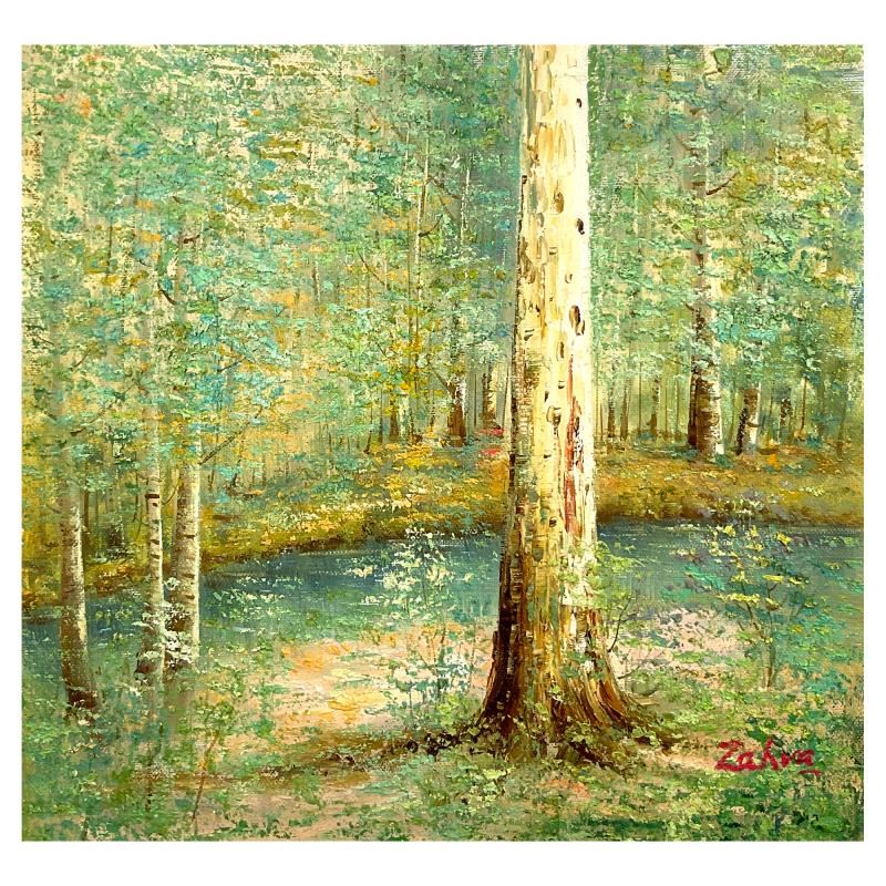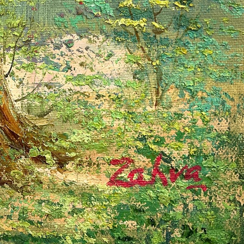 This is an original oil painting on canvas by Zahra, hand signed by the artist. Includes Letter of Authenticity. Measures approx. 32" x 30" (image).