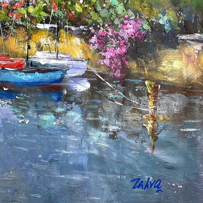 This is an original oil painting on canvas by Zahra, hand signed by the artist. Includes Letter of Authenticity. Measures approx. 38" x 26" (image).