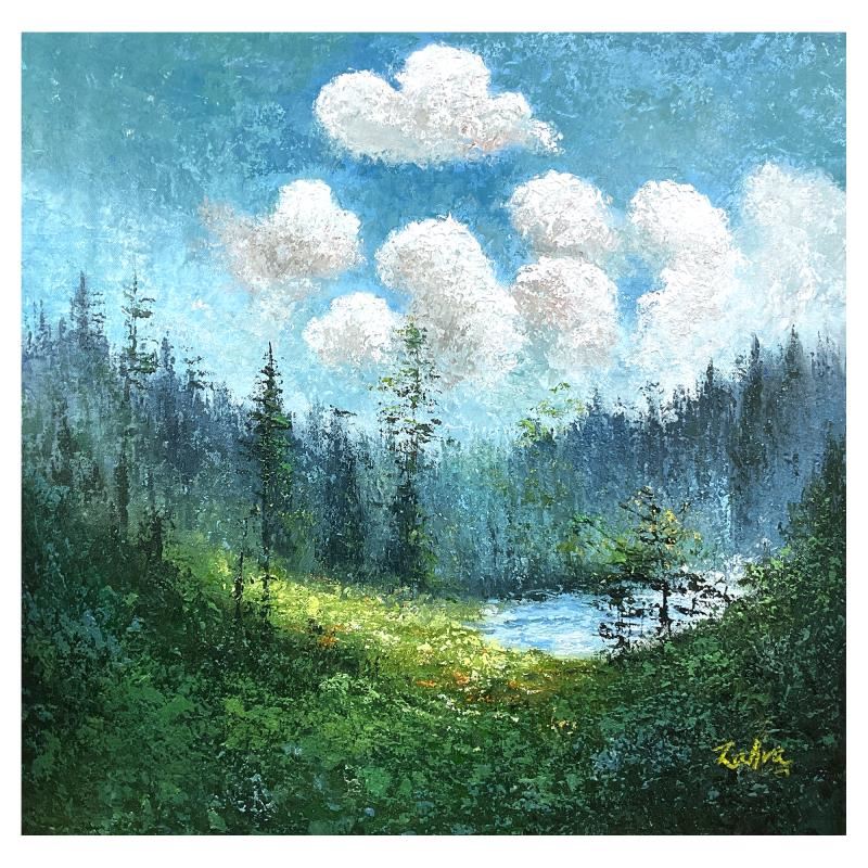 This is an original oil painting on canvas by Zahra, hand signed by the artist. Includes Letter of Authenticity. Measures approx. 49.5" x 49.5" (image).