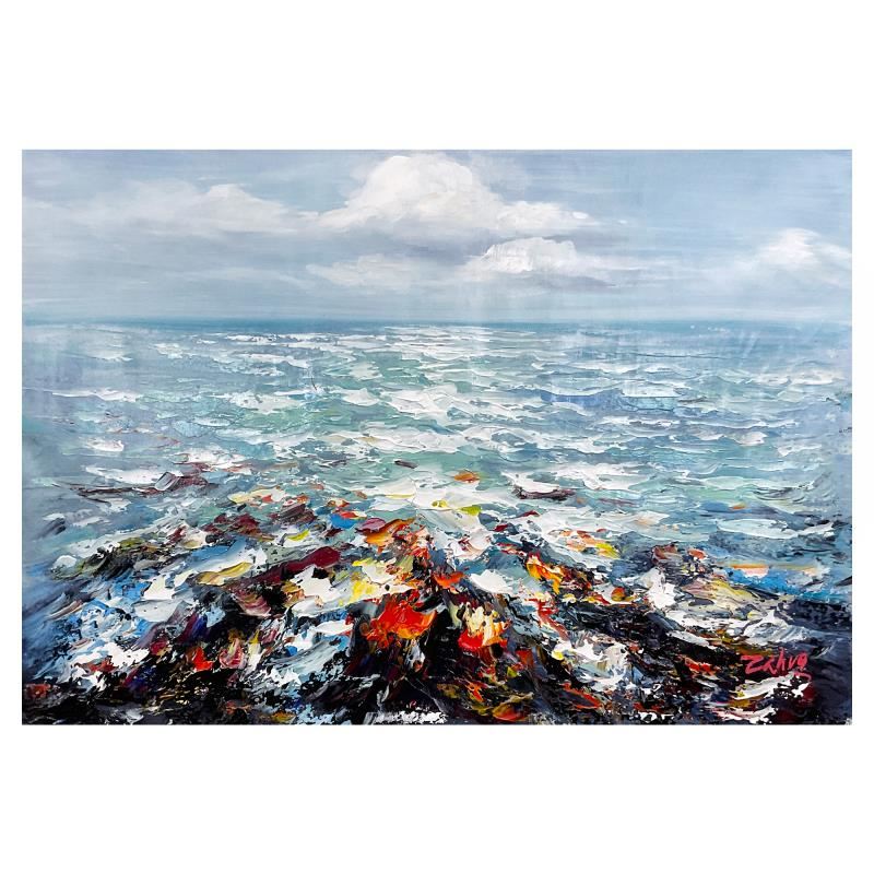 This is an original acrylic painting on canvas by Zahra, hand signed by the artist. Includes Letter of Authenticity. Measures approx. 24" x 36" (image).