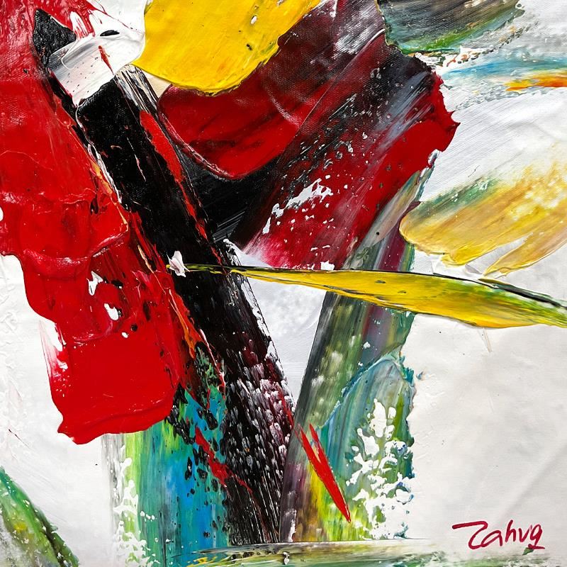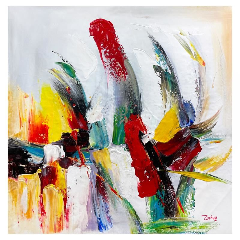 This is an original acrylic painting on canvas by Zahra, hand signed by the artist. Includes Letter of Authenticity. Measures approx. 44" x 44" (image).