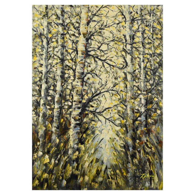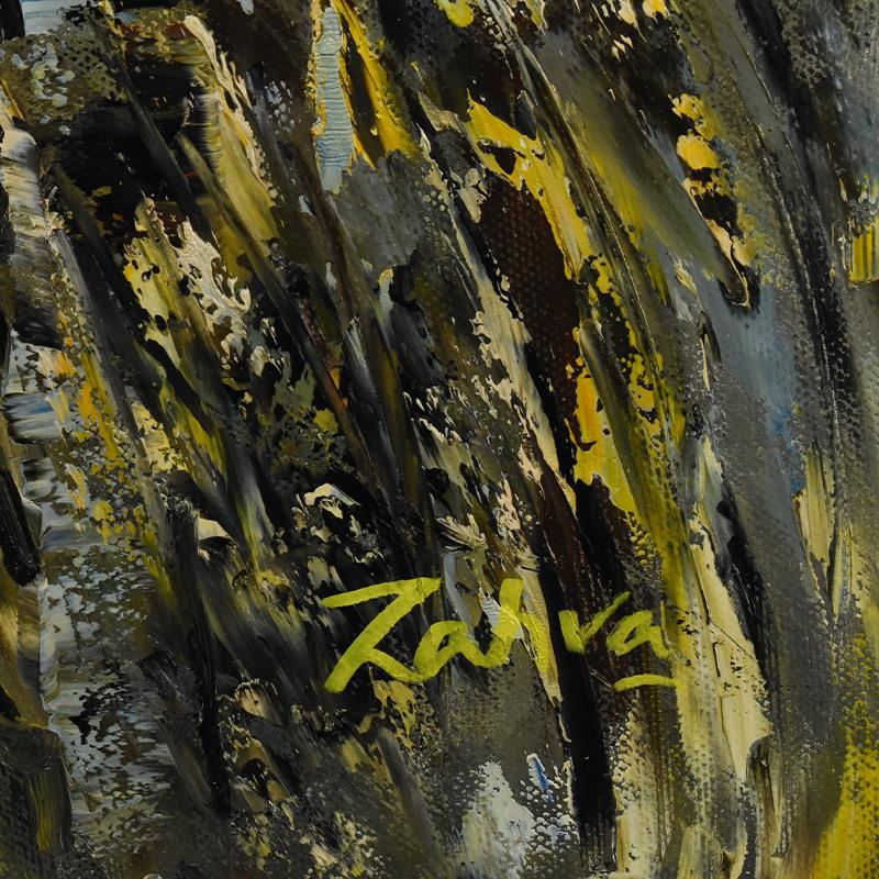 This is an original acrylic painting on canvas by Zahra, hand signed by the artist. Includes Letter of Authenticity. Measures approx. 44" x 62" (image).