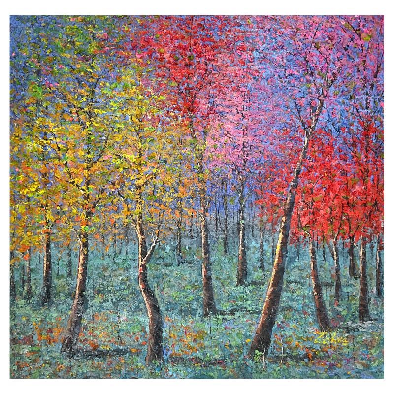 This is an original acrylic painting on canvas by Zahra, hand signed by the artist. Includes Letter of Authenticity. Measures approx. 38" x 38" (image).