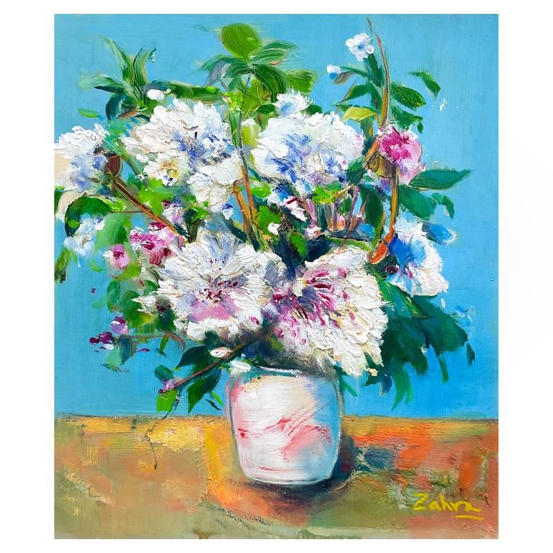 This is an original acrylic painting on canvas by Zahra, hand signed by the artist. Includes Letter of Authenticity. Measures approx. 24 x 20 (image).