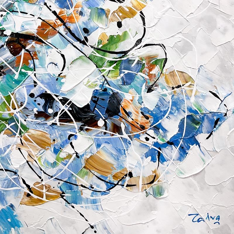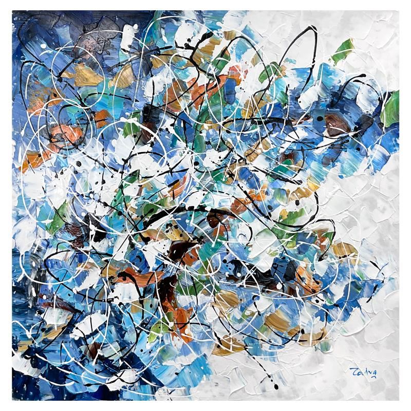 This is an original acrylic painting on canvas by Zahra, hand signed by the artist. Includes Letter of Authenticity. Measures approx. 36 x 36 (image).