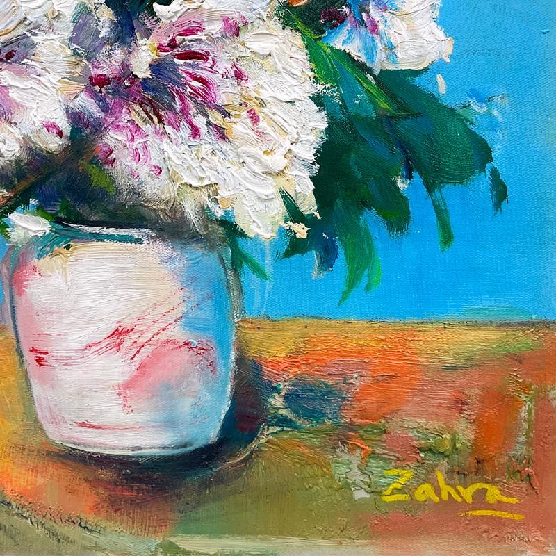 This is an original acrylic painting on canvas by Zahra, hand signed by the artist. Includes Letter of Authenticity. Measures approx. 24 x 20 (image).