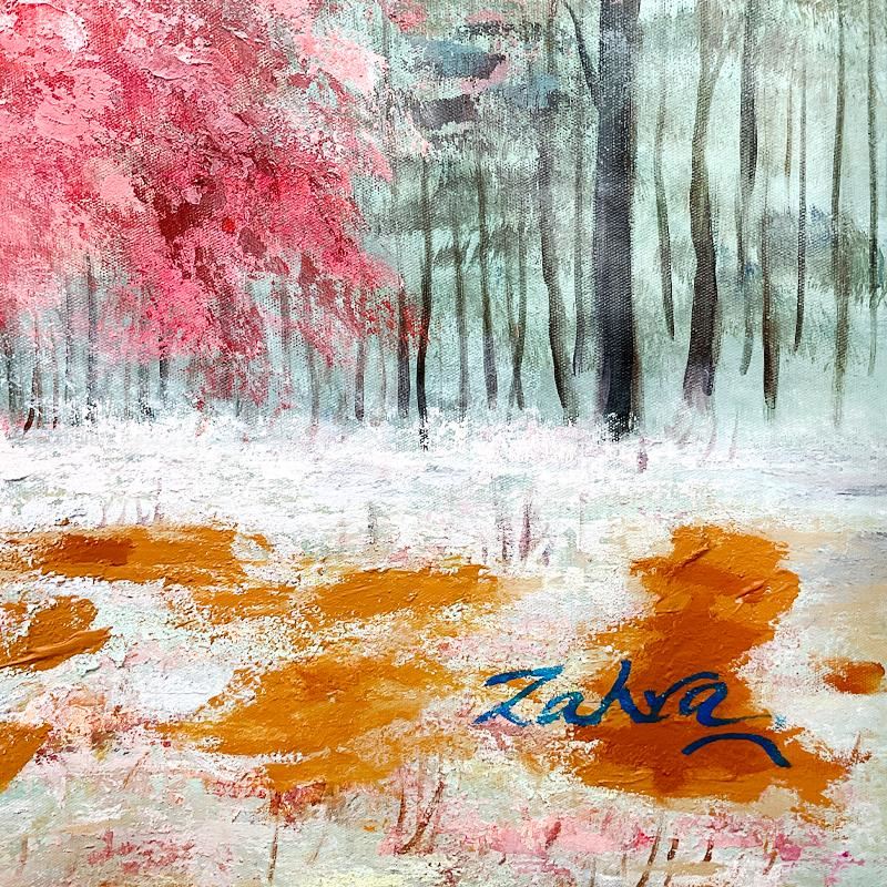 This is an original acrylic painting on canvas by Zahra, hand signed by the artist. Includes Letter of Authenticity. Measures approx. 44" x 44" (image).