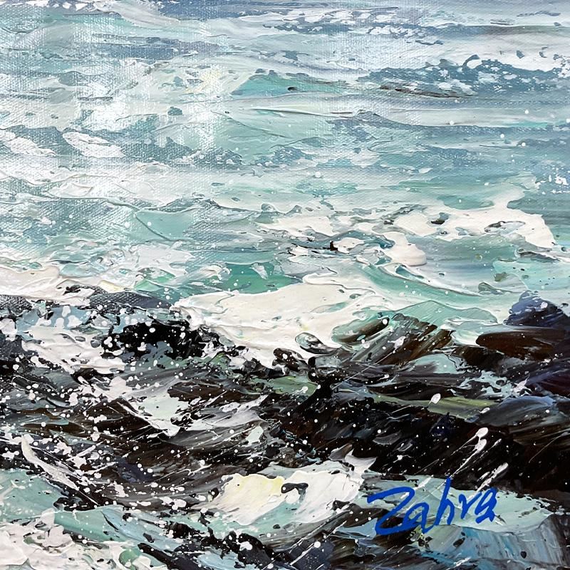 This is an original acrylic painting on canvas by Zahra, hand signed by the artist. Includes Letter of Authenticity. Measures approx. 24" x 36" (image). There are two hairline cracks on the center part of the image.