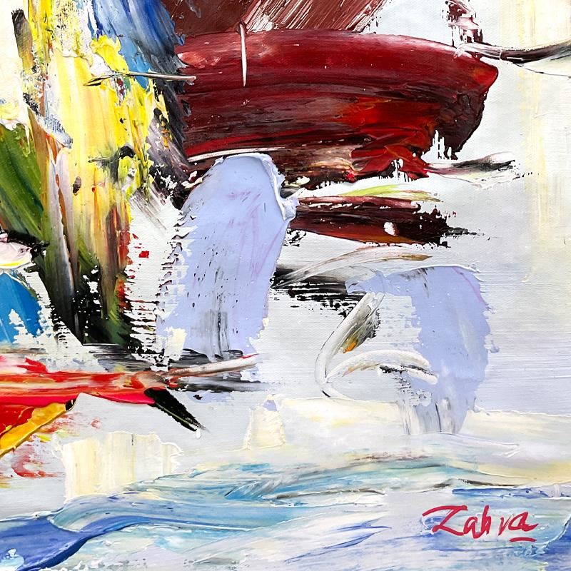 This is an original acrylic painting on canvas by Zahra, hand signed by the artist. Includes Letter of Authenticity. Measures approx. 36" x 36" (image).