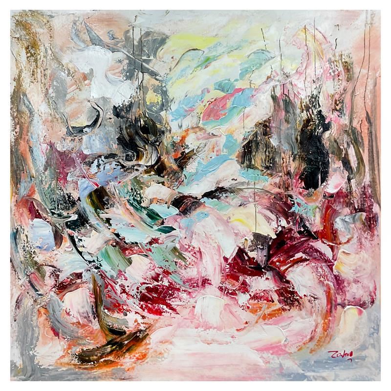 This is an original acrylic painting on canvas by Zahra, hand signed by the artist. Includes Letter of Authenticity. Measures approx. 44" x 44" (image).