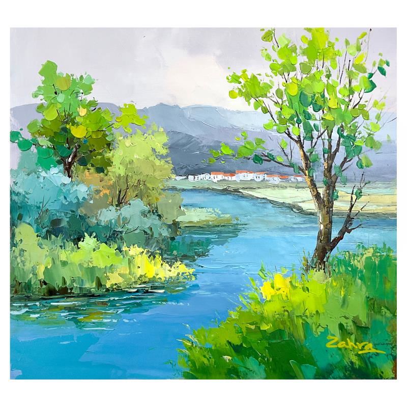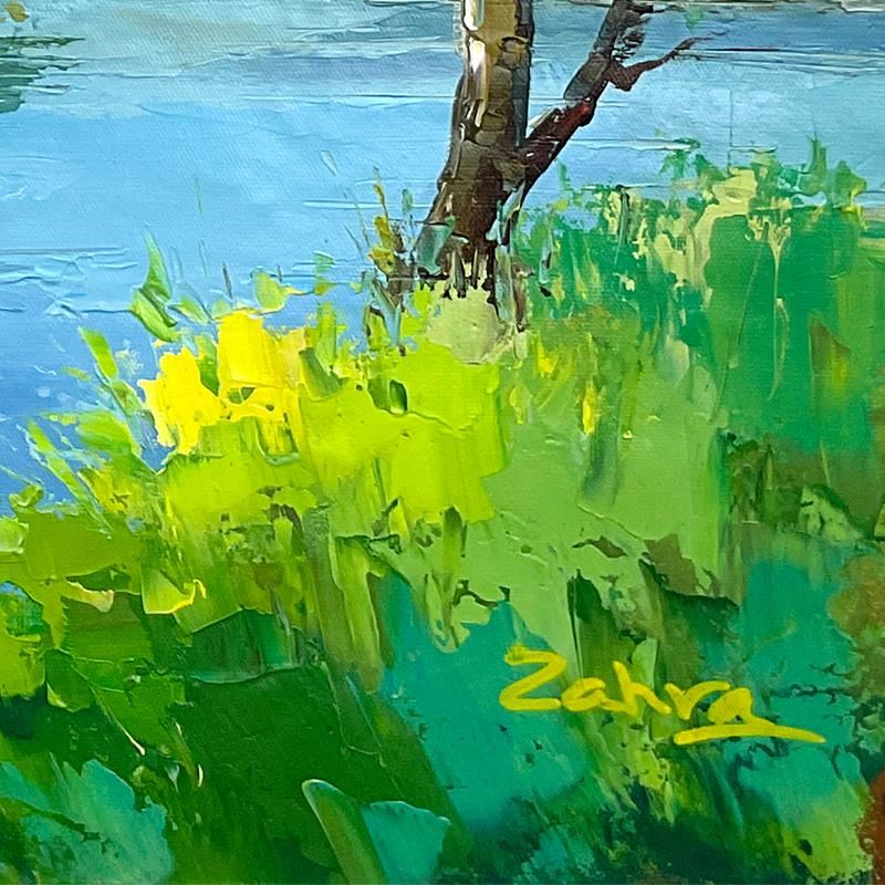 This is an original acrylic painting on canvas by Zahra, hand signed by the artist. Includes Letter of Authenticity. Measures approx. 24" x 24" (image).