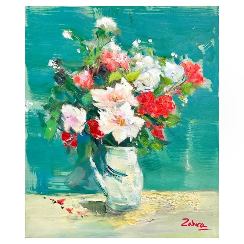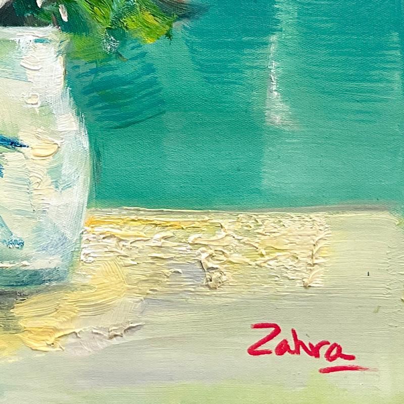 This is an original acrylic painting on canvas by Zahra, hand signed by the artist. Includes Letter of Authenticity. Measures approx. 24" x 20" (image). There is horizontal hairline crack on the center of the image that is only noticeable upon very close inspection.