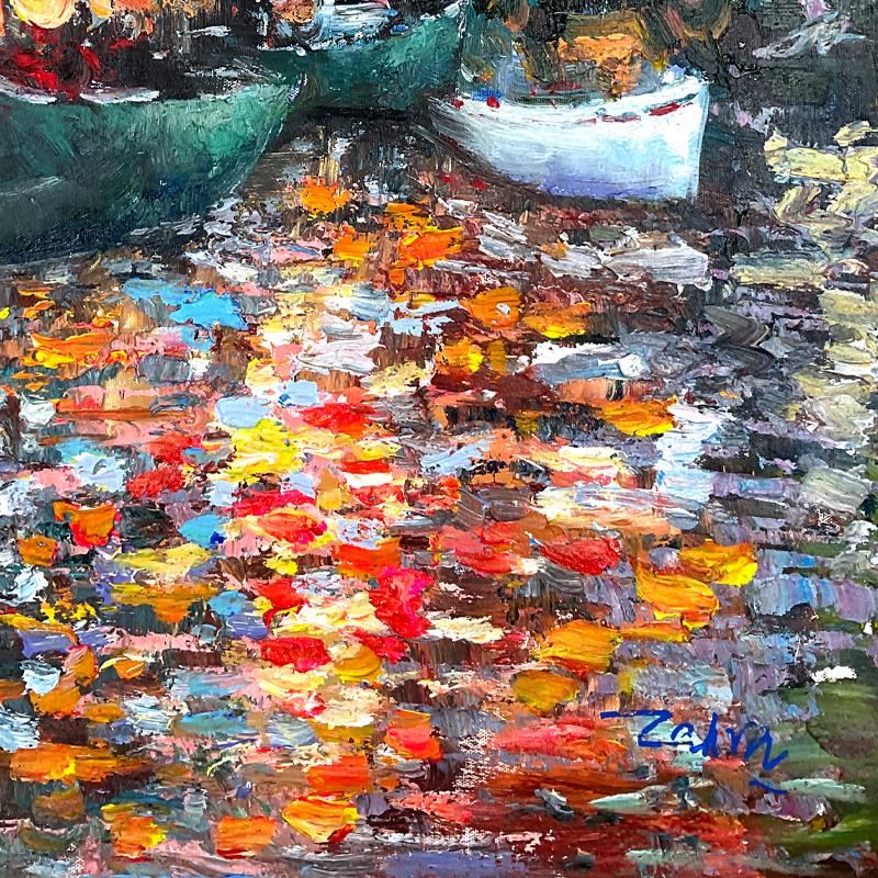 This is an original acrylic painting on canvas by Zahra, hand signed by the artist. Includes Letter of Authenticity. Measures approx. 30" x 40" (image).
