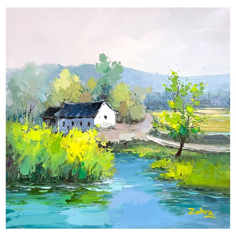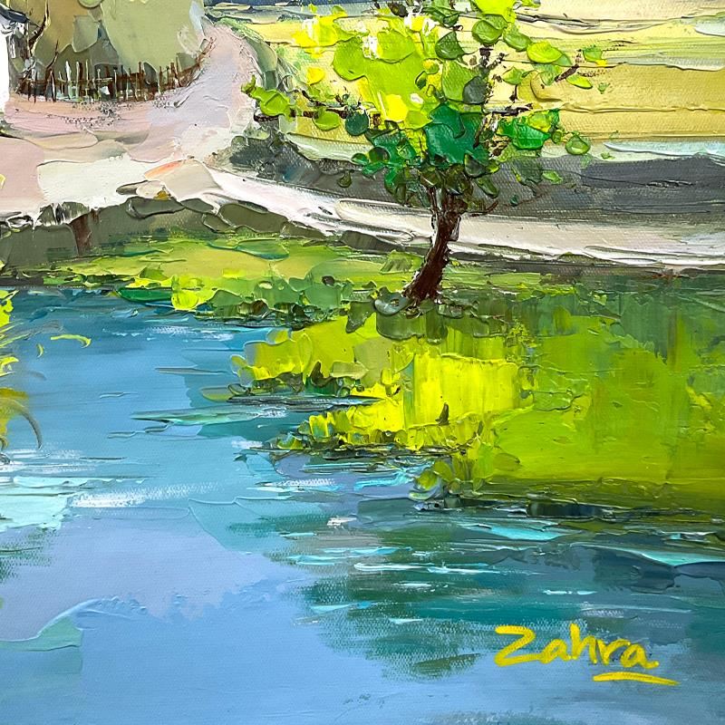 This is an original acrylic painting on canvas by Zahra, hand signed by the artist. Includes Letter of Authenticity. Measures approx. 24" x 24" (image).