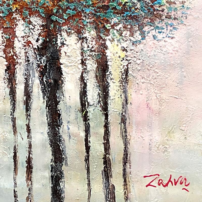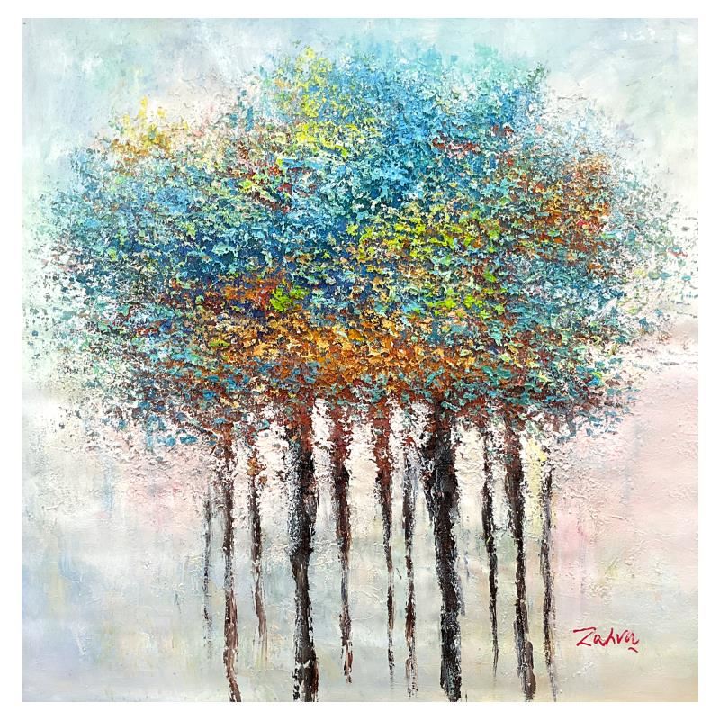 This is an original acrylic painting on canvas by Zahra, hand signed by the artist. Includes Letter of Authenticity. Measures approx. 36" x 36" (image).