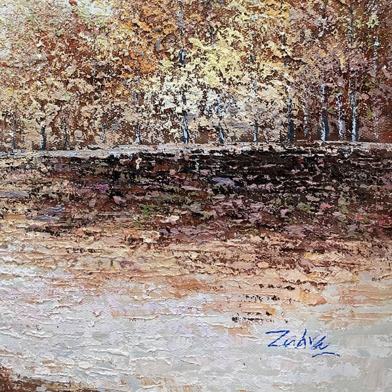 This is an original acrylic painting on canvas by Zahra, hand signed by the artist. Includes Letter of Authenticity. Measures approx. 47" x 47" (image).