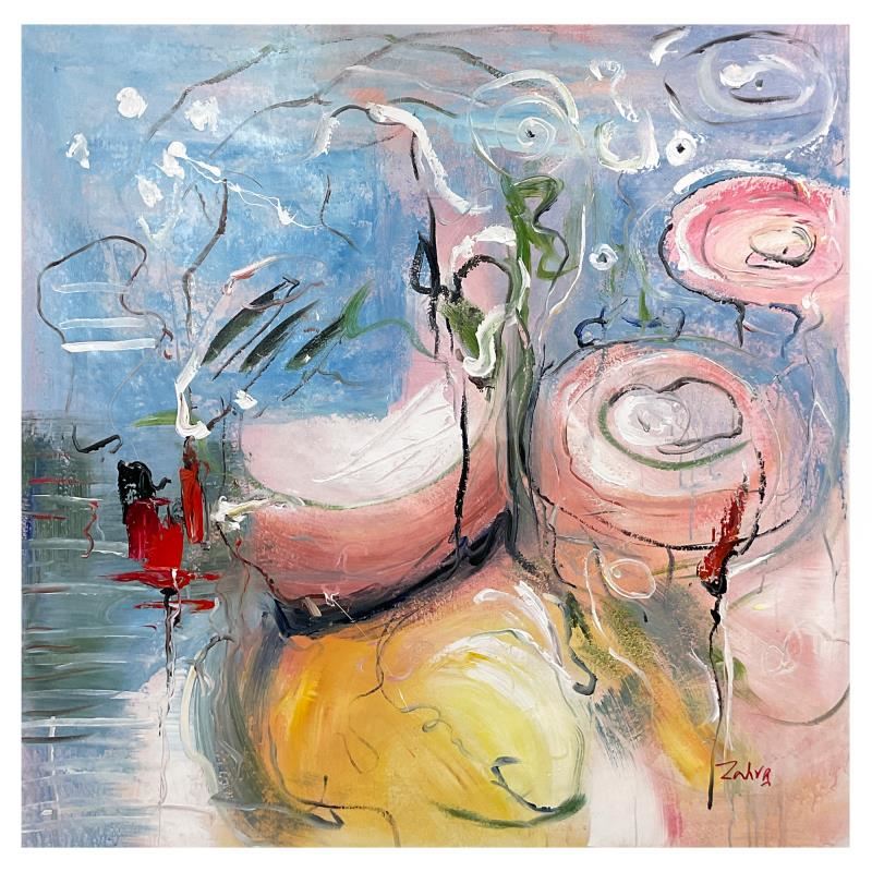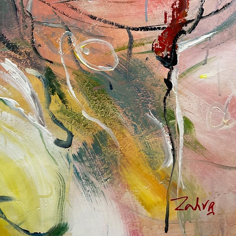 This is an original acrylic painting on canvas by Zahra, hand signed by the artist. Includes Letter of Authenticity. Measures approx. 44" x 44" (image).