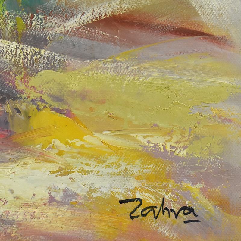 This is an original acrylic painting on canvas by Zahra, hand signed by the artist. Includes Letter of Authenticity. Measures approx. 30" x 30" (image).
