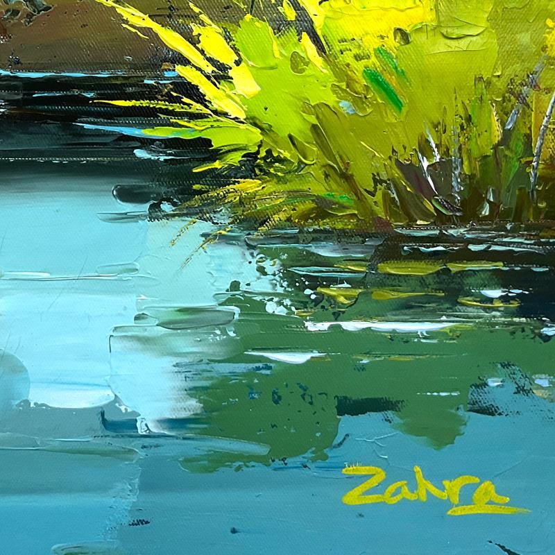 This is an original acrylic painting on canvas by Zahra, hand signed by the artist. Includes Letter of Authenticity. Measures approx. 24" x 24" (image).