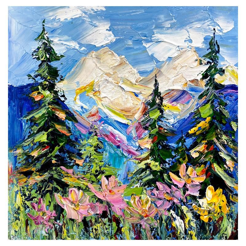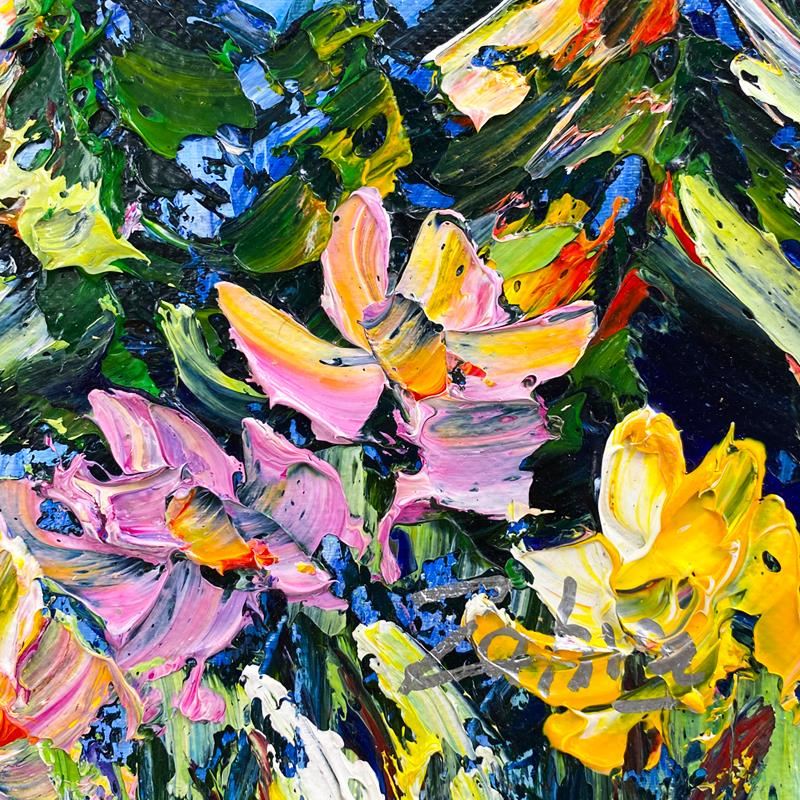 This is an original acrylic painting on canvas by Zahra, hand signed by the artist. Includes Letter of Authenticity. Measures approx. 20" x 20" (image).