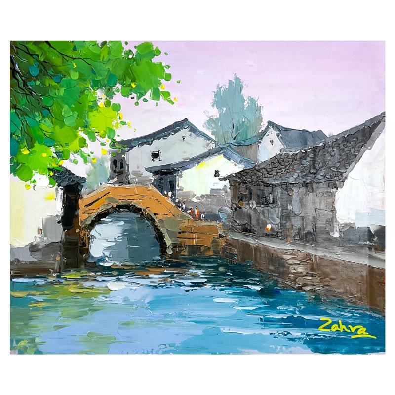 This is an original acrylic painting on canvas by Zahra, hand signed by the artist. Includes Letter of Authenticity. Measures approx. 20 x 24 (image).