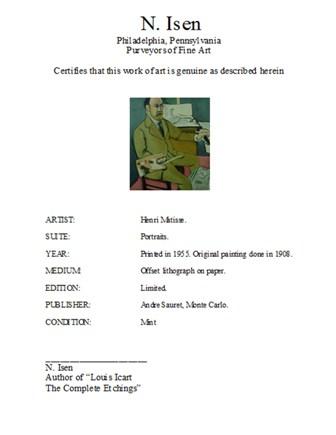 Offset lithograph on paper by Henri Matisse Limited Edition Printed in 1955. Original painting done in 1908