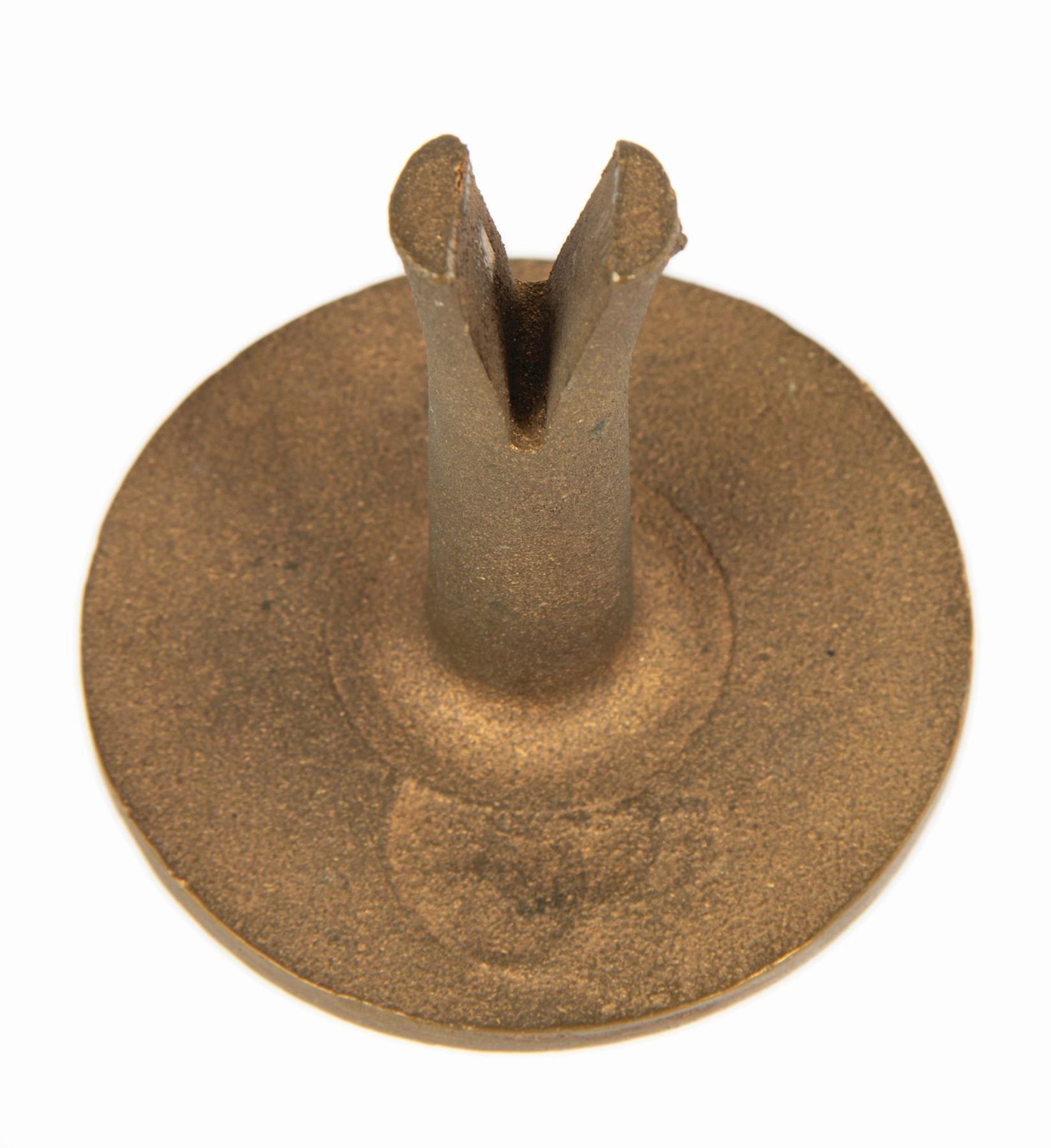 (Disneyland, c.1980s) A very rare survey marker created for use within Disneyland. This particular marker was unused, however survey markers like these are embedded in the ground at various points in the park to act as permanent measuring points for future projects, and park guests often enjoy trying to spot these markers as they journey throughout the park. Created in metal, the top of the marker is engraved with the text "Disneyland Survey Marker." Measuring 3.25" in diameter and 3.5" tall, the survey marker is in very fine condition.
