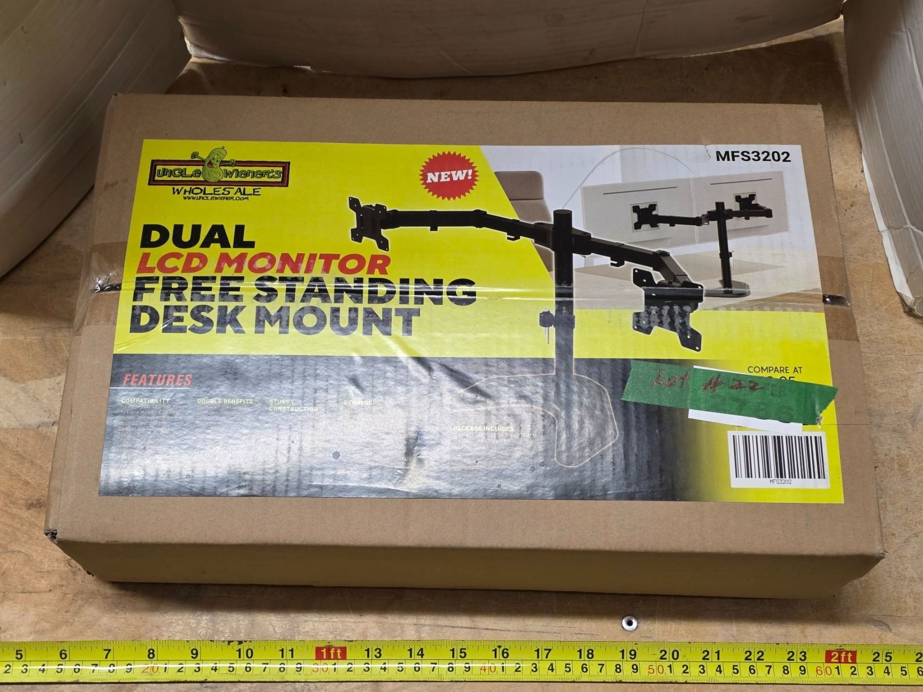 Unused Dual LCD Monitor Free Standing Desk Mount