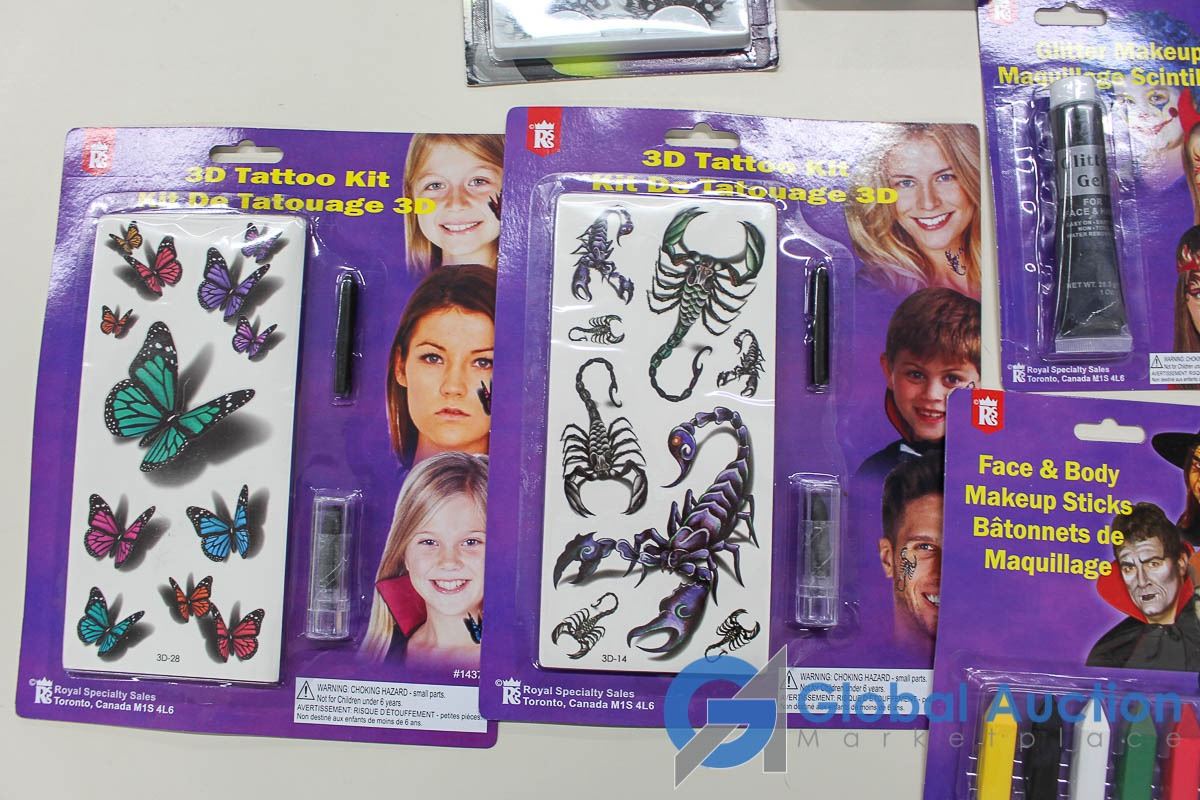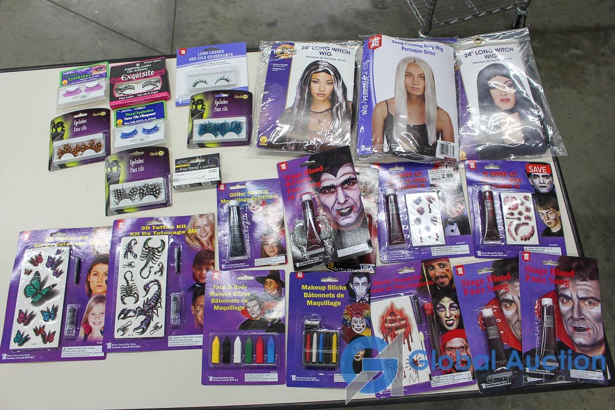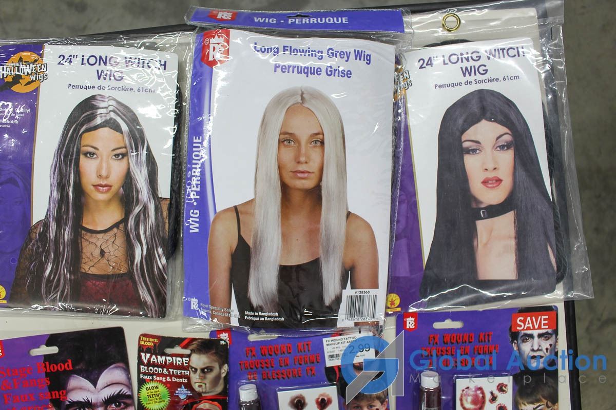 Unused Halloween Wigs, Makeup, False Lashes, Tattoos