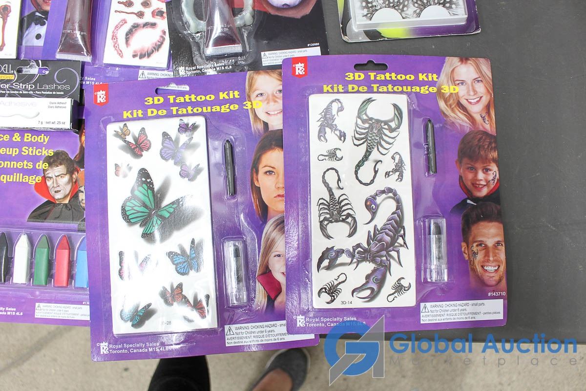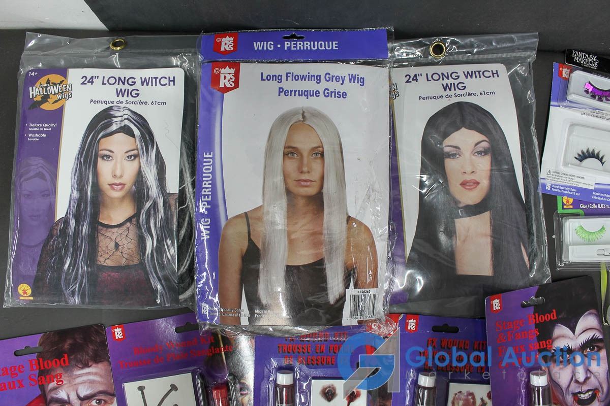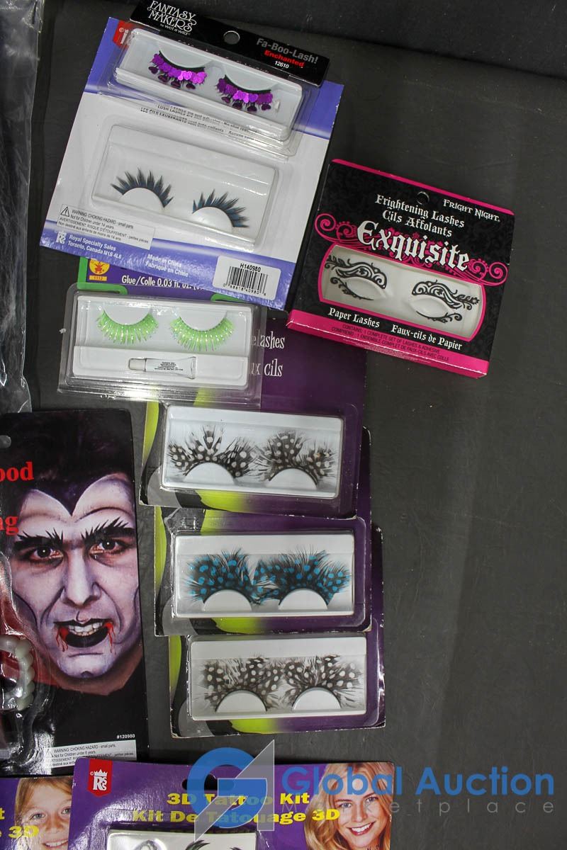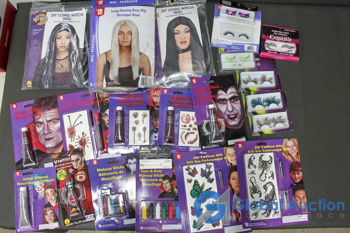 Unused Halloween Wigs, Makeup, False Lashes, Tattoos