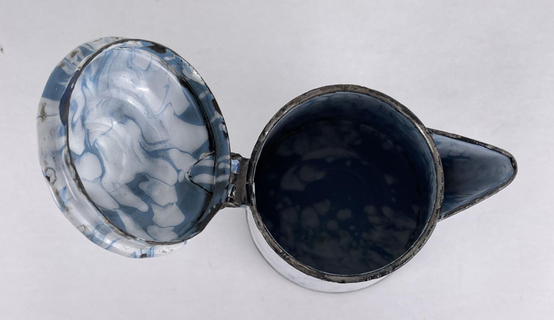 Unusual pattern. More white than blue. 9 3/8" tall.