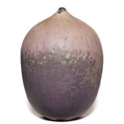 Unusual Cabat vase, bulbous form covered with a beautiful brown and purple matt glaze, signed, 6.5"h